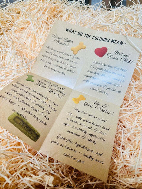 ✔️ 24 days of delicious dog biscuits in different natural colours & flavours